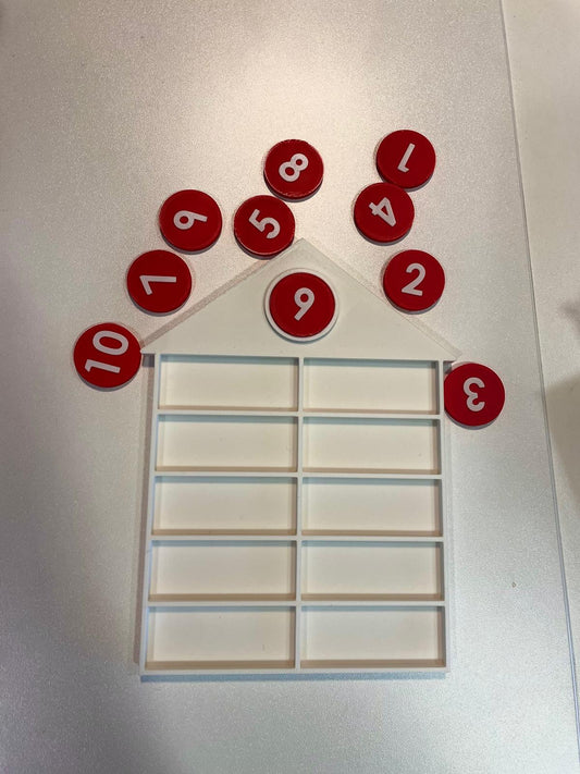 Verdeelhuisje met getalkaartjes – educatief hulpmiddel voor splitsen en sommen